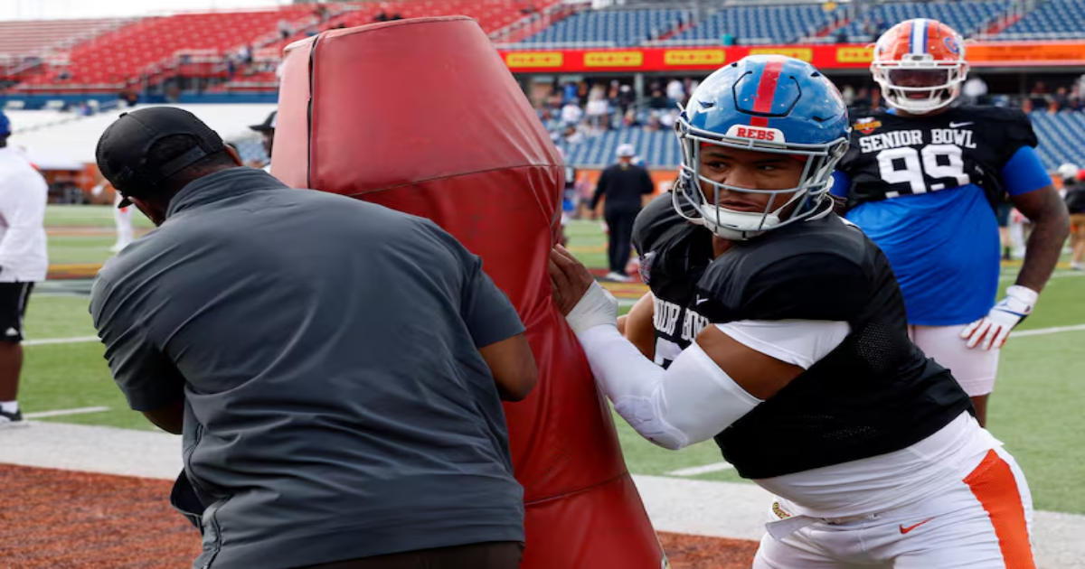 Defensive lineman Walter Nolen of Mississippi runs through drills during practice for the Senior Bowl on Jan. 30 in Mobile, Ala.
