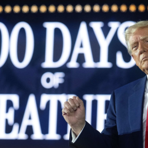 To celebrate his first 100 days in office, President Donald Trump went back to his greatest hits. During a rally Tuesday in Warren, Mich., commemorating the early marker of his…
