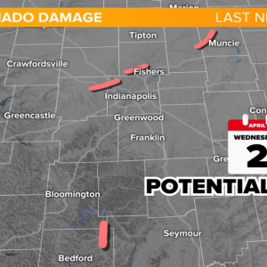 Early look at likely tornado tracks across Indiana from Wednesday, April 2