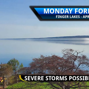 Sunny skies today may turn stormy Tuesday, but uncertainties in how widespread severe weather may become are high. [Photo by Ted Marks, Seneca Lake] High pressure is over the Finger…