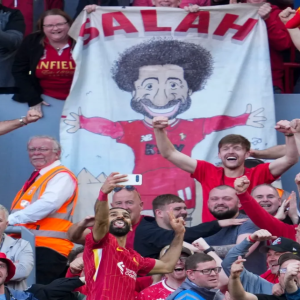 Salah poses for celebration selfie with Liverpool fans during title-winning Tottenham match