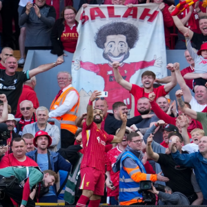Salah poses for celebration selfie with Liverpool fans during Tottenham match