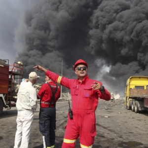 MUSCAT, Oman — A massive explosion and fire rocked a port Saturday in southern Iran purportedly linked to a shipment of a chemical ingredient used to make missile propellant, killing five people…
