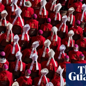 A couple sleep in Rome ahead of the funeral Photograph: Hannah McKay/Reuters Members of the clergy arrive for the service Photograph: Henry Nicholls/AFP/Getty Images Cardinals arrive to be seated in…