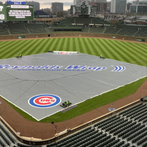 The tarp covers the field during a weather delay at Wrigley Field. The opening game of the Cubs’ series with the visiting Phillies started in a weather delay Friday afternoon….
