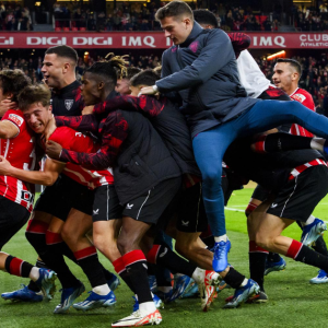 Unai Gómez celebra con sus compañeros el bacalao de la victoria ante la UD en San Mamés / Athletic Club El Athletic Club recibe esta tarde en San Mamés a…