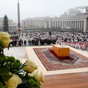 El fallecido papa emérito Benedicto XVI es velado en el interior de la Basílica de San Pedro, en el Vaticano, donde miles de personas han acudido a rendirle un último…