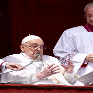 Pope Francis, who is recovering from a severe bout of pneumonia, marked Easter Sunday by making a brief appearance to bless thousands of people who had gathered for mass in…