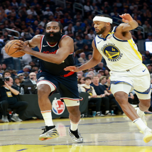 The Los Angeles Clippers and Denver Nuggets will face off Saturday afternoon in Game 1 of the Western Conference NBA playoffs. James Harden #1 of the LA Clippers is guarded…
