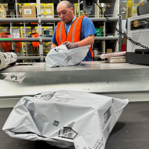 A person works at the Amazon warehouse, busy on Prime Day, in Melville, New York, July 11, 2023. For 10 years, Aaron Cordovez has been selling kitchen appliances on Amazon….