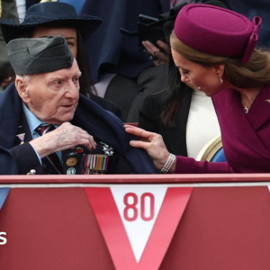 Media caption, The Prince and Princess of Wales have greeted veterans at the VE Day Parade as thousands line the streets of London to mark 80 years since the end…