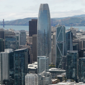 FILE: An aerial view of Salesforce Tower in San Francisco on May 30, 2023. The tower’s namesake company is buying the publicly traded Informatica. Brandon Sloter/Getty Images One of San…