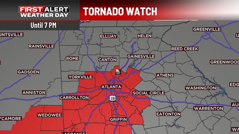 Tornado watch for metro Atlanta and areas south until 7 PM(anf)