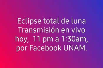 Es el caso de la Universidad Nacional Autónoma de México (UNAM), que transmitirá el fenómeno a partir de las 23:00 horas, a través de su página de Facebook.