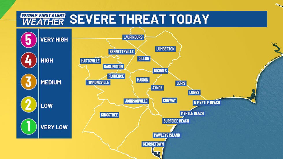 MYRTLE BEACH, SC (WMBF) – We are giving you the FIRST ALERT to a few stronger to severe storms to move through today. Stay up to date with the forecast as this line of storms moves through.