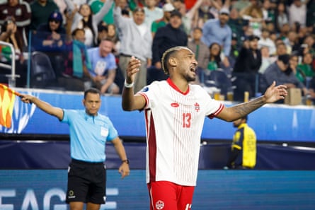 How Canada weren’t awarded a spot kick on nine minutes was a mystery. Captain Edson Álvarez swung a boot at a ball which Derek Cornelius got to first. SoFi’s giant infinity screens signalled that VAR was checking just as Martinez signalled a restart. On the sideline, Marsch looked in vain for answers.