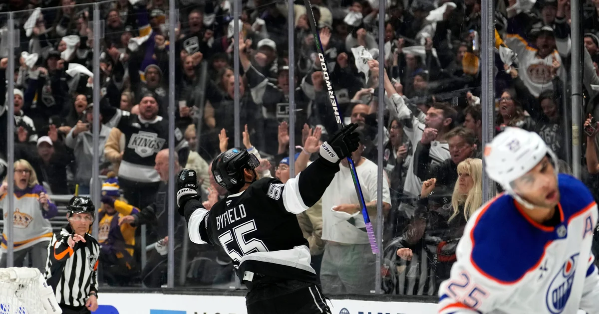 Quinton Byfield and Andrei Kuzmenko scored for the second straight game, and Brandt Clarke scored his first playoff goal to begin an overwhelming performance by second-seeded Los Angeles.