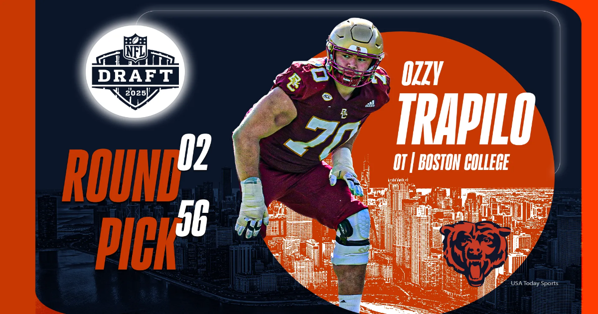 The Chicago Bears have selected Boston College offensive tackle Ozzy Trapilo with the 56th overall pick in the 2025 NFL draft.