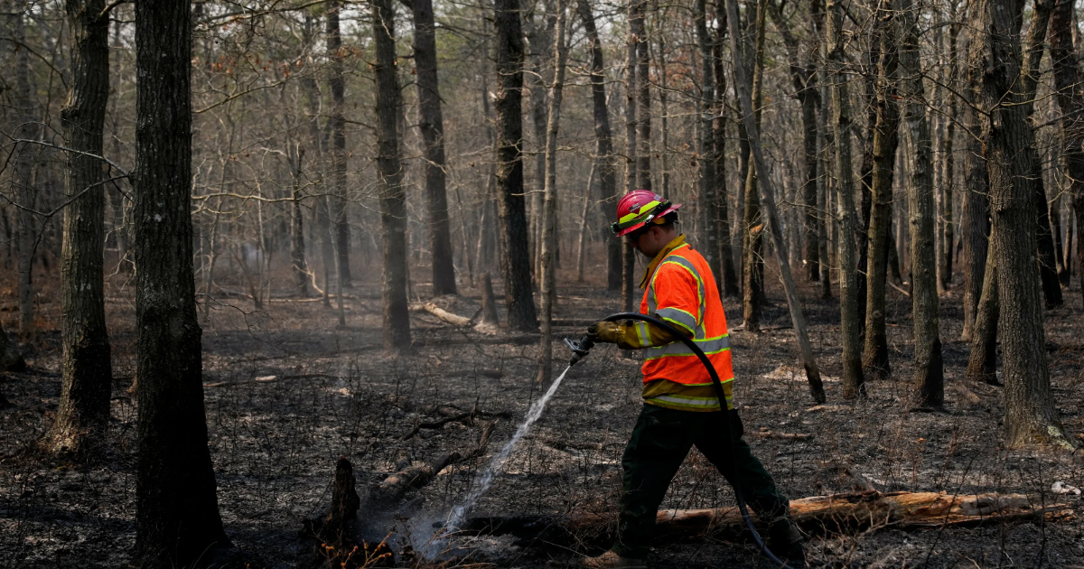 Firefighters continue battling a massive wildfire burning in central New Jersey into Thursday that threatened to become the largest blaze in the state in nearly 20 years. The Jones Road wildfire had consumed 13,250 acres, and firefighters had achieved 50% containment late Wednesday, according to the New Jersey Forest Fire Service. All evacuation orders were lifted for the about 5,000 residents who fled the fire in Ocean and Lacey townships, the fire service said. The Garden State Parkway and Route 9, parts of which were previously closed, have also reopened. The wildfire was no longer threatening populated areas but a “soaking rainfall” is needed to stop the blaze, officials warned. The cause of the fire is under investigation.