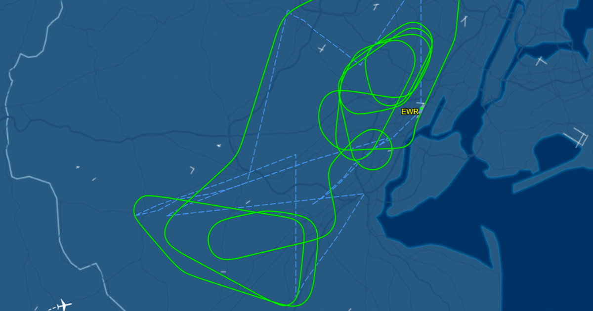 Flight tracker Flightaware.com shows United Airlines Flight 1321 flying in circles around the New Jersey airspace instead of heading toward Los Angeles International Airport, its destination.