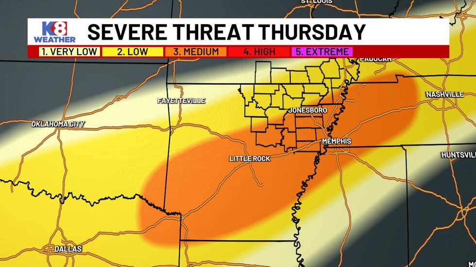 The severe weather ‘marathon’ continues Thursday with a level 3 threat for southern counties in Region 8.(kait)