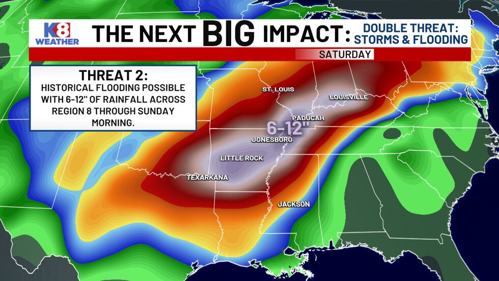 Region 8 is facing a double threat of severe storms and floods in the coming days, according to the K8 Storm Team.(KAIT-TV)