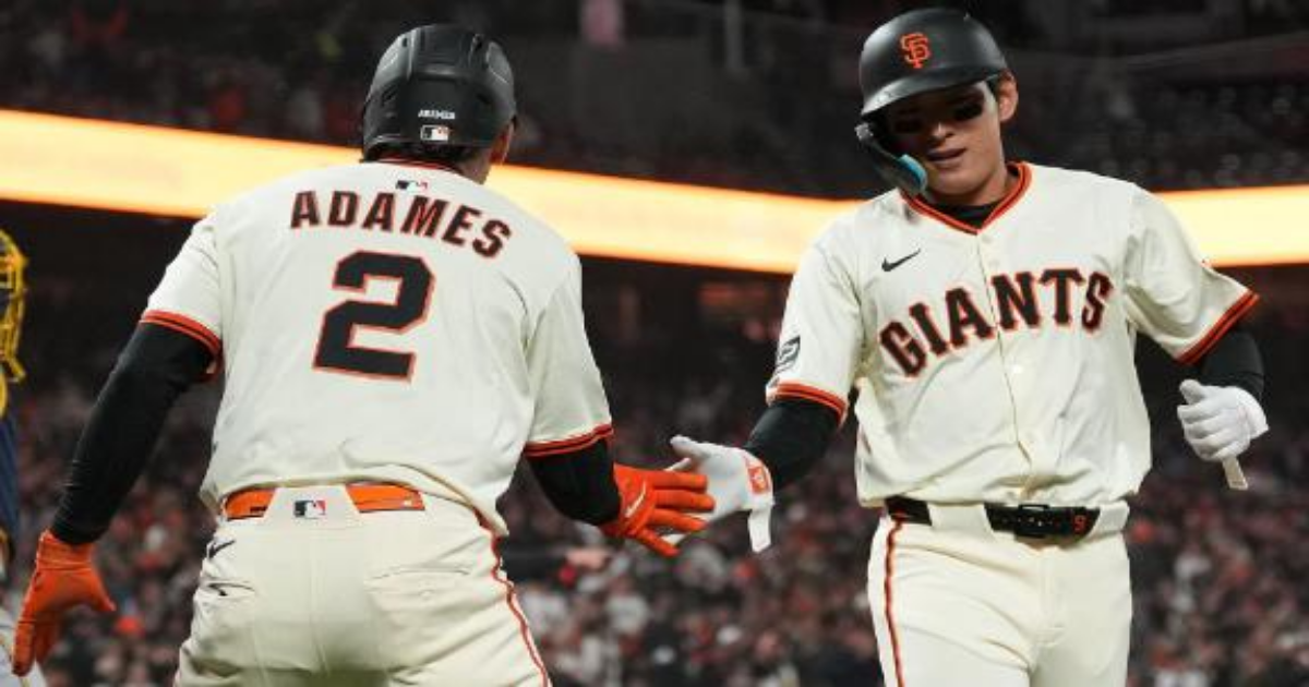 Stymied by Freddy Peralta for the first five innings, the Giants broke through in the sixth. Flores’ slow single up the middle glanced off the glove of shortstop Joey Ortiz and rolled into center field as two runs scored.