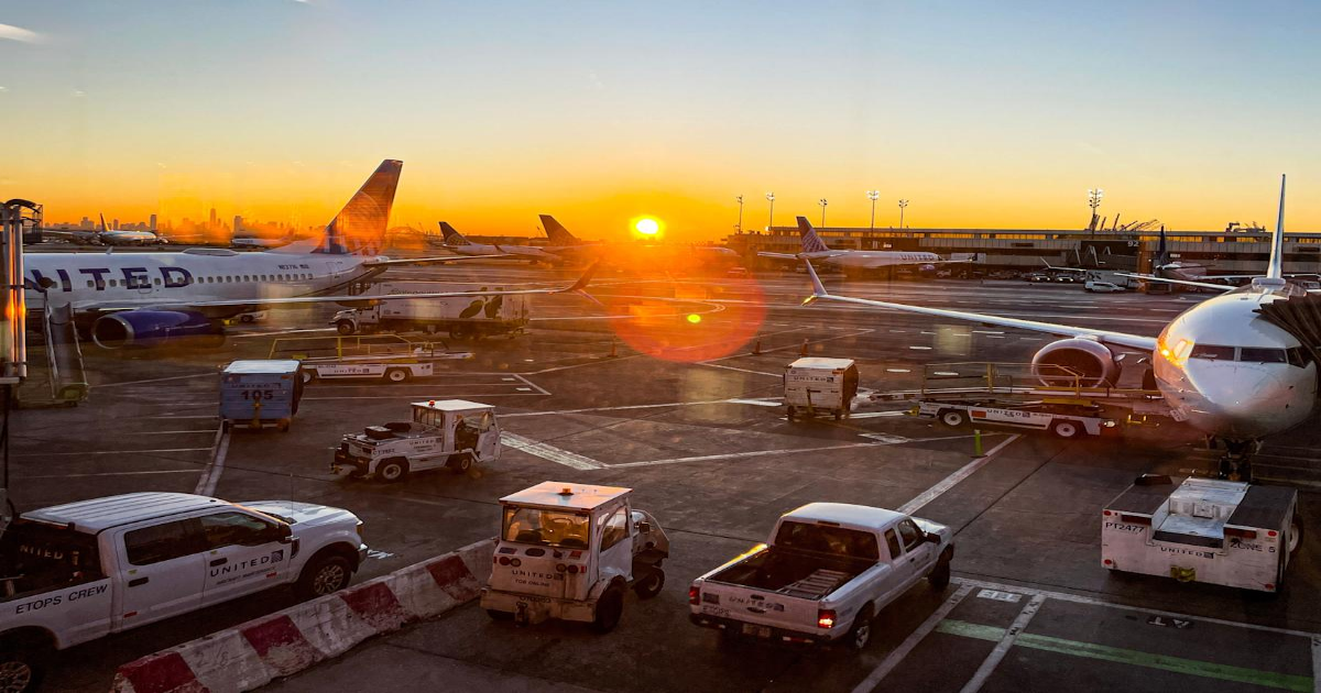 United Airlines plans at sunrise at Newark Liberty Airport 2025