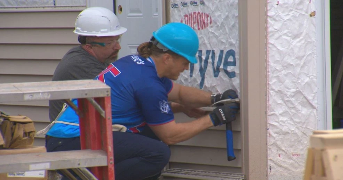 Former Packers player Clay Matthews volunteers withHabitat for Humanity of Greater Green Bay on a home build during NFL Draft week, April 24, 2025. (WLUK)