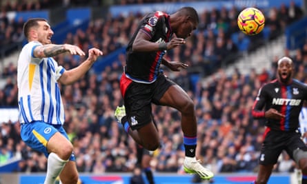 Ismaïla Sarr steals in behind Brighton’s Lewis Dunk to score in Crystal Palace’s away 3-1 win in December. Photograph: Shaun Brooks/CameraSport/Getty Images