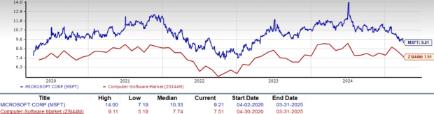Despite Microsoft’s impressive AI expansion, the stock’s current valuation of 9.21 times forward sales appears to fully account for near-term growth potential. This multiple exceeds both the Zacks Computer – Software industry average (7.51 times) and approaches Microsoft’s historical median (10.33 times).