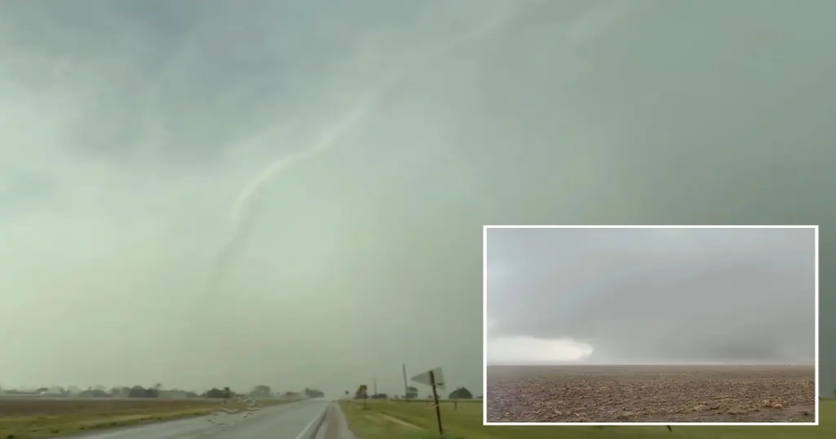 A tornado seen near a road in Kansas on May 18, 2025. Clinton H Hendricks IV via Storyful