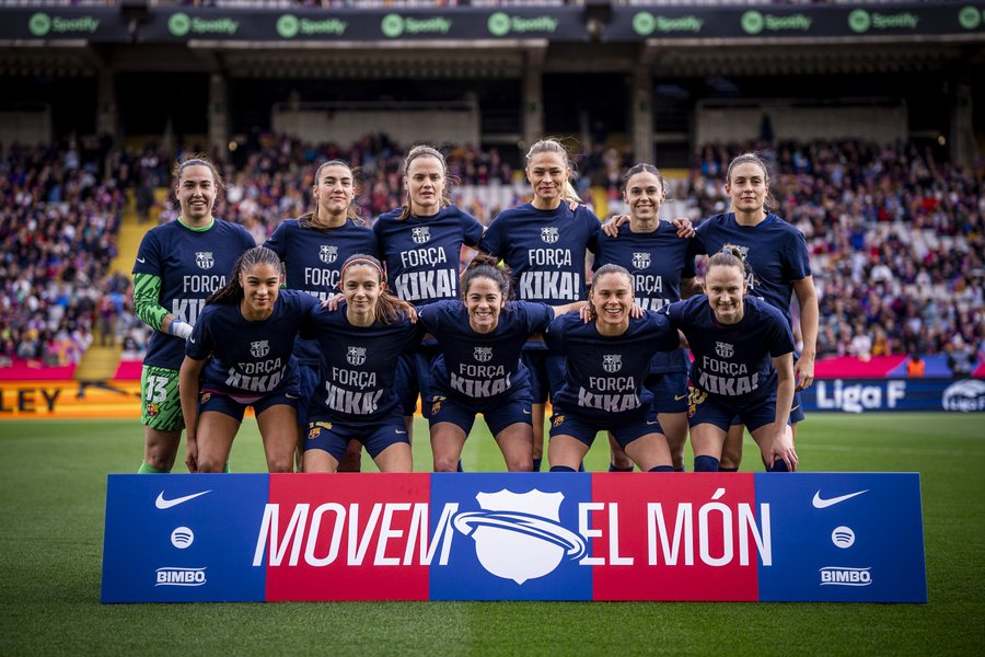 Las jugadoras del Barcelona han saltado al terreno de juego con una camiseta en apoyo a Kika. La futbolista se despidió de la temporada tras sufrir una rotura en el ligamento lateral interno del tobillo