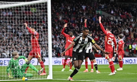 No Goal: Newcastle United’s Alexander Isak celebrates scoring a goal that was later disallowed. Photograph: Dylan Martinez/Reuters