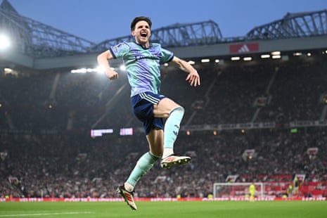 Rice celebrates scoring his team’s first goal. Photograph: Stuart MacFarlane/Arsenal FC/Getty Images