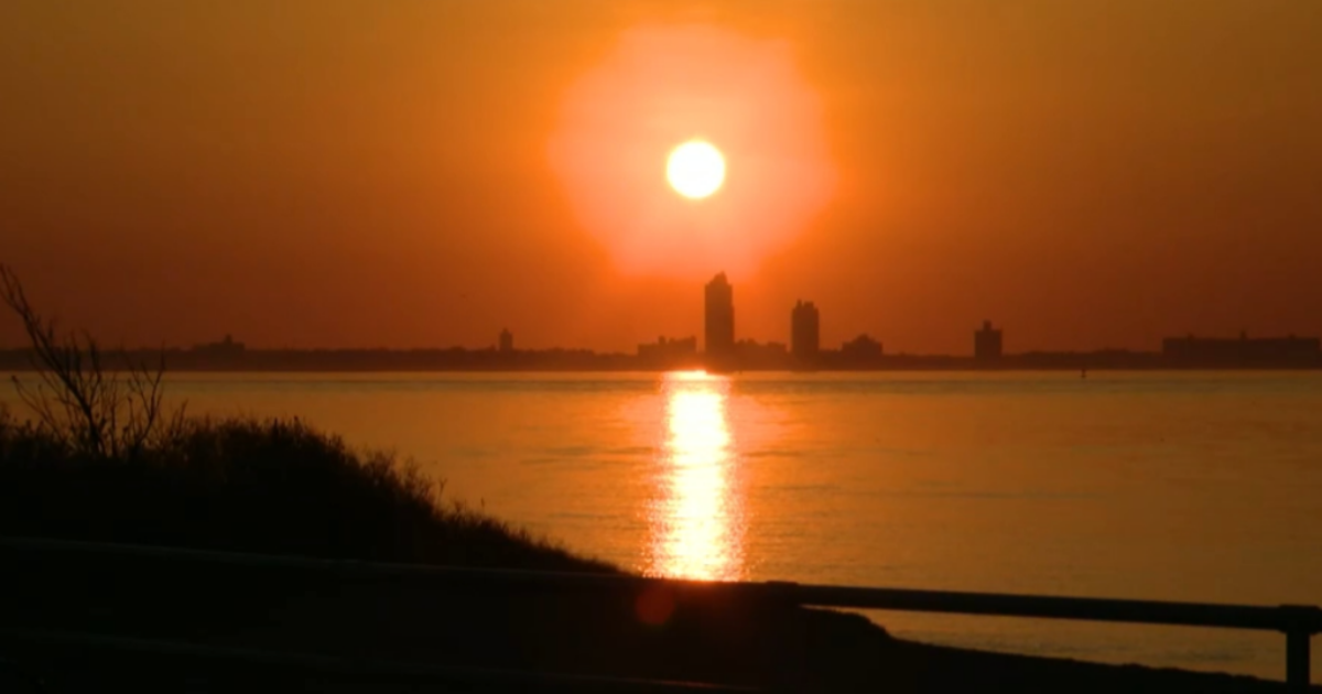 The smoke created a hazy orange sunrise over Staten Island on Thursday morning.