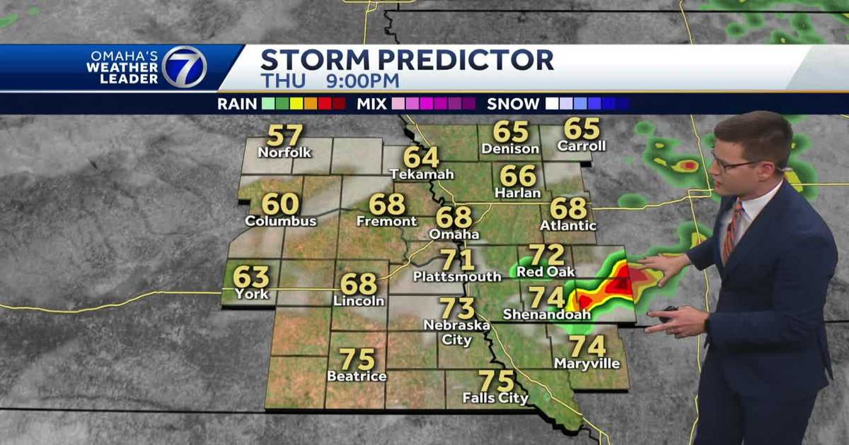 SUMMER TODAY, AS WE ARE LIKELY GOING TO CLIMB BACK INTO THE 80S. BUT TODAY IS A SEVERE WEATHER DAY AS WE’RE TRACKING THE POTENTIAL FOR SEVERE STORMS THIS EVENING. A COLD FRONT WILL BE IN THE VICINITY, AND NOT EVERYONE IS GOING TO SEE THE STORMS, BUT WHERE THEY DEVELOP WILL LIKELY BECOME SEVERE FAIRLY QUICKLY. THE WINDOW OF OPPORTUNITY 5 TO 10 P.M. HERE IN THE OMAHA METRO. THINKING MORE LIKELY 5 TO 8 P.M. BUT THE EVENING HAVE TO BE WEATHER AWARE WITH ANY STORMS THAT DEVELOP AND INTENSIFY. VERY LARGE HAIL IS THE MAIN THREAT. WE’RE TALKING PING PONG, GOLF BALL, MAYBE TO ISOLATED UP TO BASEBALL SIZE HAIL. STILL COULD SEE SOME 6070, POSSIBLY UP TO 80 MILE PER HOUR WIND GUSTS, LOWER TORNADO THREAT, BUT CAN’T RULE OUT 1 OR 2 IN THE AREA, SO STAY WEATHER AWARE IF YOU HAVE ANY PLANS THIS EVENING. AGAIN, BETWEEN 5 AND 10 P.M., STORM PREDICTION CENTER HAS AN ENHANCED RISK HERE IN ORANGE THROUGH THE I-80 CORRIDOR FROM YORK LINCOLN THROUGH THE OMAHA METRO TOWARD ATLANTIC, UP TOWARD TEKAMAH. DOWN TOWARD NEBRASKA CITY. SO STILL SOME QUESTIONS AS TO WHERE THE STORMS ARE GOING TO FIRE UP. IF THEY’RE GOING TO FIRE UP BACK HERE TO THE WEST FROM COLUMBUS TO WEST POINT TEKAMAH AND THEN MOVE THROUGH THE METRO, OR FIRE UP NEAR AND EAST OF THE METRO AREA. SO STILL THE ENTIRE AREA, EVEN THOUGH WE’RE NOT ALL GOING TO SEE IT, HAVE TO BE ON ALERT LATER TODAY. AS I SHOW YOU HERE ON STORM PREDICTOR. WALKING THROUGH MOST OF █THE DAY WARM, BREEZY, MOSTLY CLOUDY. WE’LL SEE THOSE TEMPERATURES CLIMB INTO THE 80S. HERE’S 5:00. THIS PARTICULAR MODEL HAS THE FRONT COMING IN A LITTLE SOONER. SO IT STARTS TO FIRE UP STORMS BETWEEN 5 AND 6:00 NEAR AND EAST OF THE OMAHA METRO, AND THEN MORE DEVELOPMENT SOUTH OF I-80. AS WE HEAD TOWARD SEVEN 8:00. OTHER MODELS HAVE THAT FIRING UP TO OUR NORTHWEST, WHERE A LITTLE SLOWER WITH THE FRONT. SO WE’LL REALLY BE WATCHING THAT FRONT PLACEMENT IN THE EVENING. BUT REGARDLESS, MOST OF THE ACTIVITY SHOULD BE PUSHING OUT OF OUR AREA AS WE GO TOWARD NINE, TEN, 11:00. SO IF YOU HAVE ANY PRACTICES GAMES THIS EVENING, NEED TO HAVE MULTIPLE WAYS TO RECEIVE ANY ALERTS AS THOSE CONDITIONS COULD CHANGE FAIRLY QUICKLY. RIGHT NOW, THINGS ARE FAIRLY QUIET. MOST OF THE STORM ACTIVITY EARLY MORNING DOWN IN KANSAS, HEADING TOWARD THE KANSAS CITY METRO AREA, THOUGH A FEW SHOWERS SKIRTING THE SOUTHERN EDGE OF OUR VIEWING AREA. FOLKS IN FALL CITY OUT TOWARD MARYVILLE, MISSOURI. THOSE WILL CONTINUE TO MOVE OFF TO THE EAST. WE’VE GOT MAINLY CLOUDY SKIES RIGHT NOW AS WE LOOK OVER 72ND AND CROWN POINT. STILL WITH THE SOUTH BREEZE. MAY SMELL A LITTLE BIT OF THAT. FLINT HILLS SMOKE STILL THOUGH. AIR QUALITY GOOD TO MODERATE OVER MOST SPOTS RIGHT NOW, SO NOT EXPECTING TO SEE AS MUCH SMOKE AS WE SAW YESTERDAY MORNING. TEMPERATURES MAINLY IN THE 60S. 65. NORMAL. 69 IN LINCOLN TO 54. IN NORFOLK. 64 IN RED OAK, IOWA. WIND OUT OF THE SOUTH AGAIN, GUSTING 20 TO 30MPH MOST OF THE DAY. SO AGAIN GOING TO BE BREEZY. GOING TO WARM US UP QUITE A BIT AS YOU PLAN OUT YOUR DAY RIDE TO WORK. FINE. THE RIDE HOME FROM WORK MAY GET A LITTLE DICEY STILL. AGAIN, WE’RE WARMING UP, BUT JUST A CHANCE AS WE GET TOWARD 5:00 6:00 THAT WE COULD HAVE SOME SPOTTY, SEVERE STORMS AND THEN THAT THREAT CONTINUING TOWARD EIGHT NINE, 10:00. SO SEVERE WEATHER DAY TODAY AFTER THE FRONT MOVES THROUGH. MUCH COOLER TO FINISH OFF THE WEEK. HIGHS IN THE UPPER 50S TOMORROW, LOW 60S ON SATURDAY AND THEN IMPACT WEATHER. EASTER SUNDAY STILL LOOKS LIKE A GOOD CHANCE WE COULD GET SOME RAIN. THAT COULD CAUSE SOME WET CONDITIONS FOR YOUR EASTER HOLIDAY. BEFORE WE SEE THOSE SEVENTYS RETURN NEXT WEEK. BUT WITH THE THREAT OF SEVERE WEATHER T