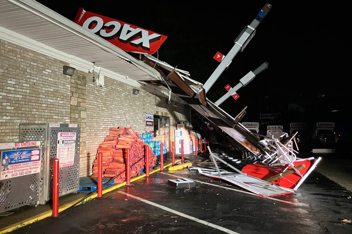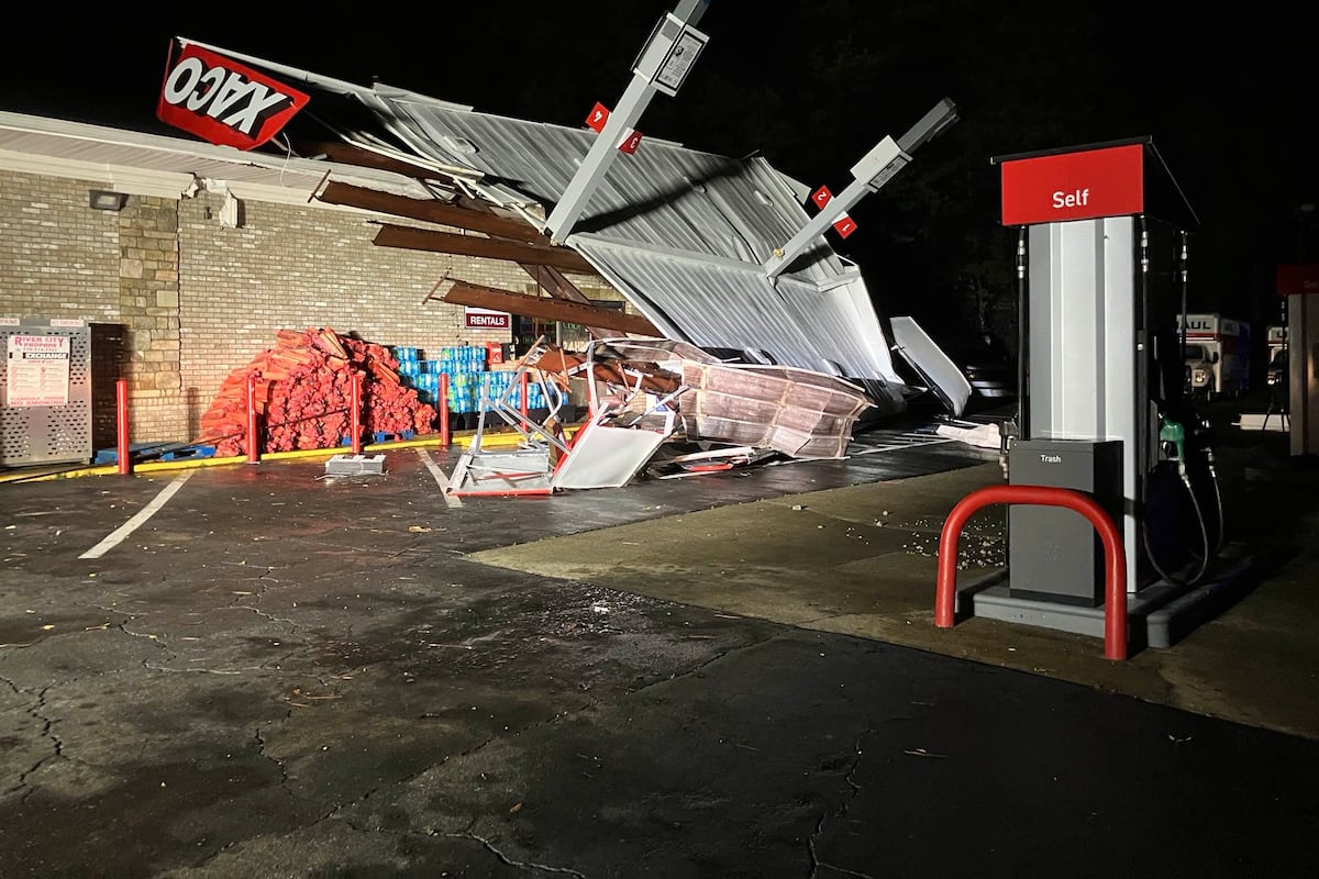 In Paulding County, powerful winds caused a gas station awning to flip over and onto a convenience store.