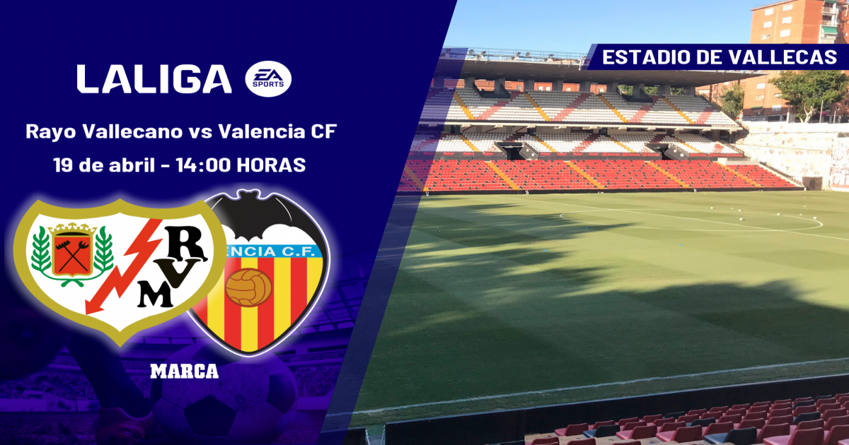 El partido entre Rayo Vallecano y Valencia CF se jugará el sábado 19 de abril a las 14:00 horas.