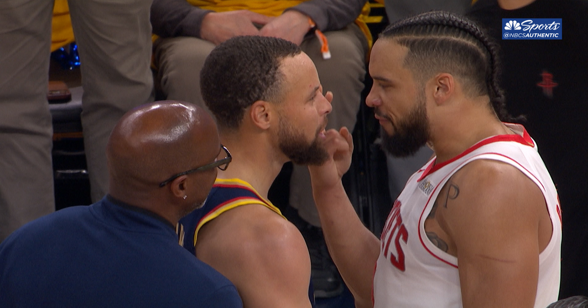 And Curry’s gesture started a kerfuffle between the Warriors and Rockets.