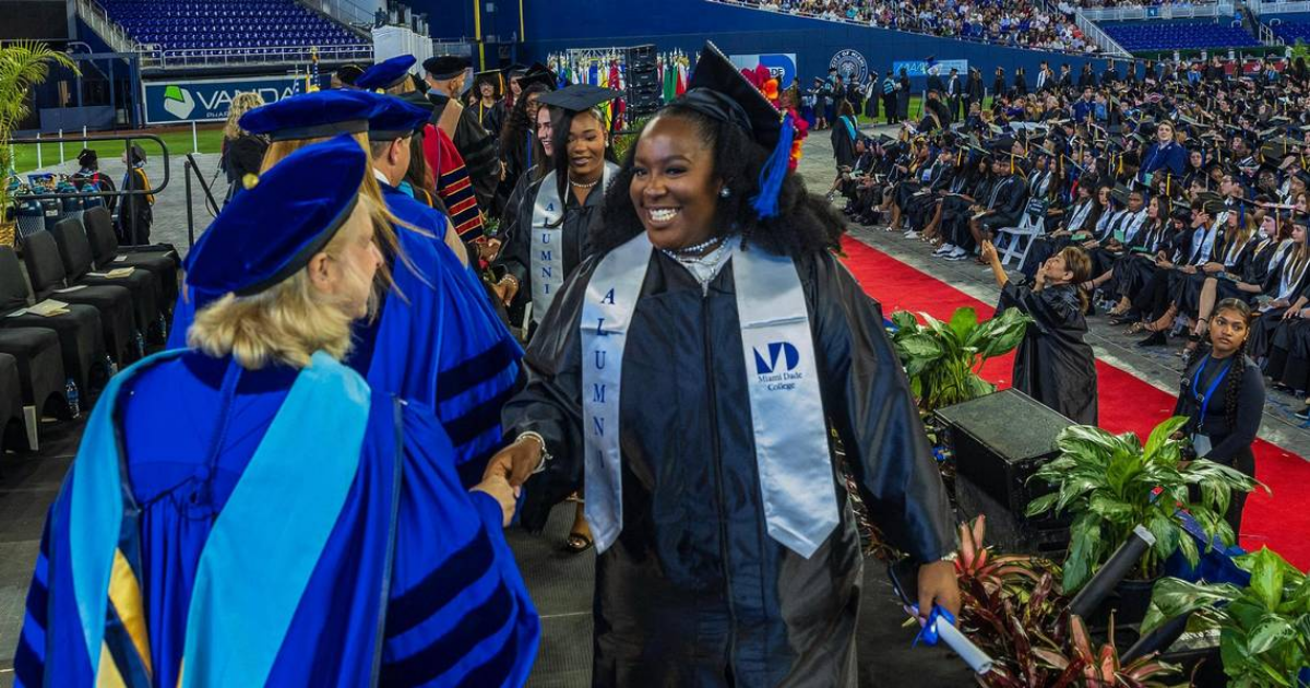 Miami Dade College hosted three commencement ceremonies on Saturday at loanDepot park, home of the Miami Marlins. The early ceremony featured Reshma Saujani, a leading activist who has spent more than a decade building movements to fight for the economic empowerment of women and girls. Graduates from the North, Hialeah and West campuses walked in that ceremony.