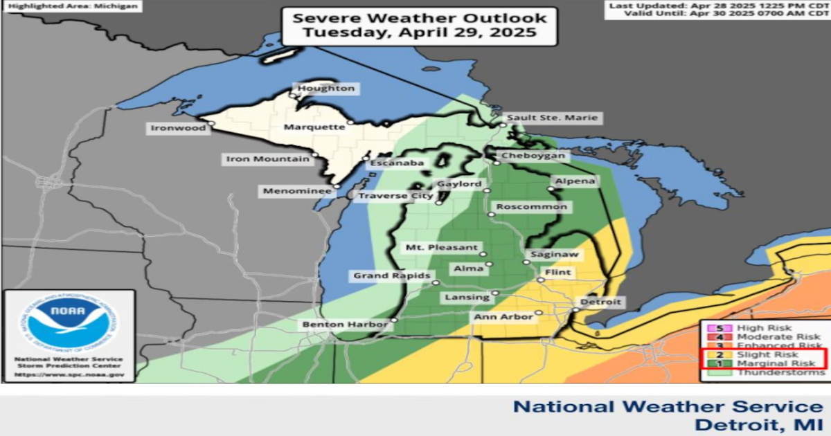 “A cold front tracking through on Tuesday brings the potential for severe weather during the afternoon and evening hours,” NWS meteorologists in Detroit said. “Keep an eye on the latest forecast as we get closer.”