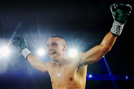 Tim Tszyu celebrates victory in the IBO Inter-Coninental Superwelterweight title bout. Photograph: Mark Evans/EPA