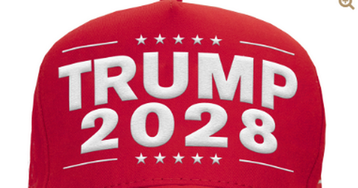 The $50 peaked cap is the usual Make America Great Again (MAGA) red and is embroidered with the words: “Trump 2028” in white. There is a horizontal line of five stars above and below the apparent election slogan and the website claims the hat is “made in America”.