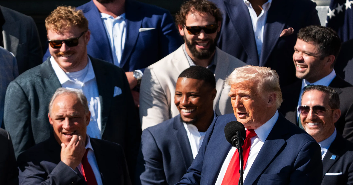 Trump also took a shot at the New York Giants, for letting star Eagles running back Saquon Barkley depart during free agency. Barkley, who arrived Sunday at the White House with Trump on Marine One after playing golf with the president, eclipsed the 2,000-yard rushing mark in his first season with Philadelphia.