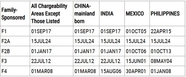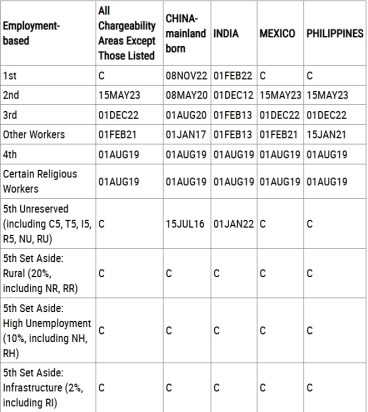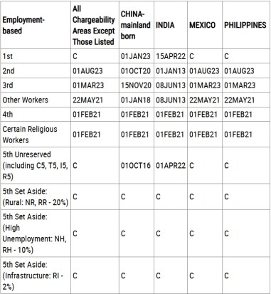 Foreign nationals must have a priority date for their preference category and country that is earlier than the date below to be able to submit an employment-based adjustment application in April.