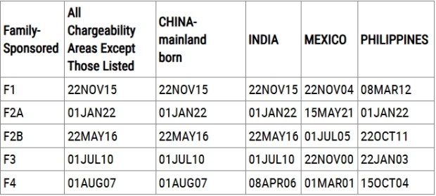 EB-1: China will stay at November 8, 2022, whereas India would move forward by two weeks, to February 15, 2022. Every other nation will remain up to date.